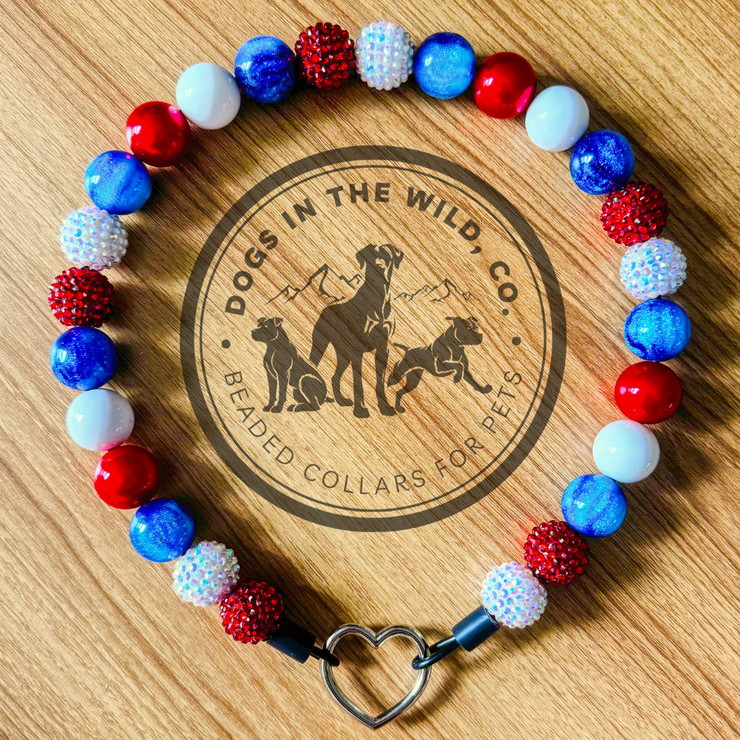 Elevate your pet's accessory game with our exclusive beaded necklace collars. Each piece is meticulously handcrafted for lasting elegance. All Dogs In The Wild collars are structured with high grade vinly-coated steel wire and securely crimped on each end, withstanding over 400 lbs of break strength! Durability and Style - all in one!