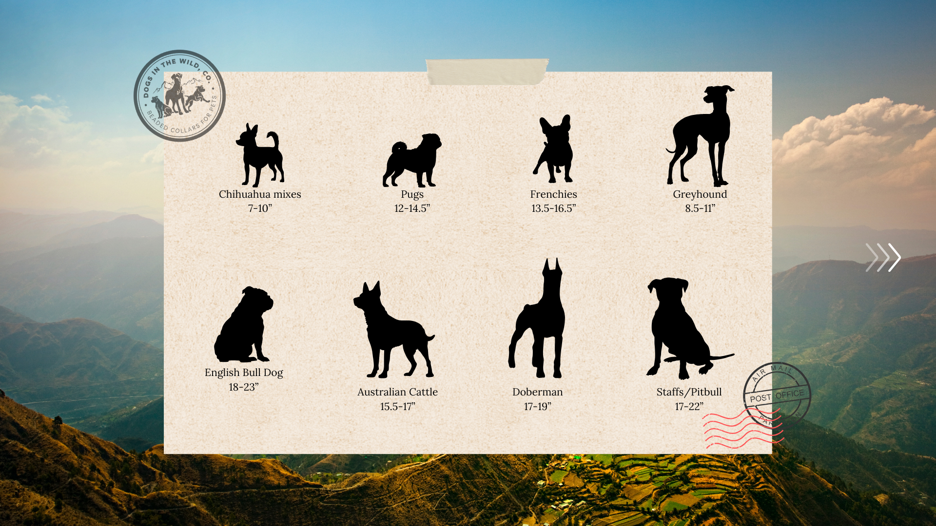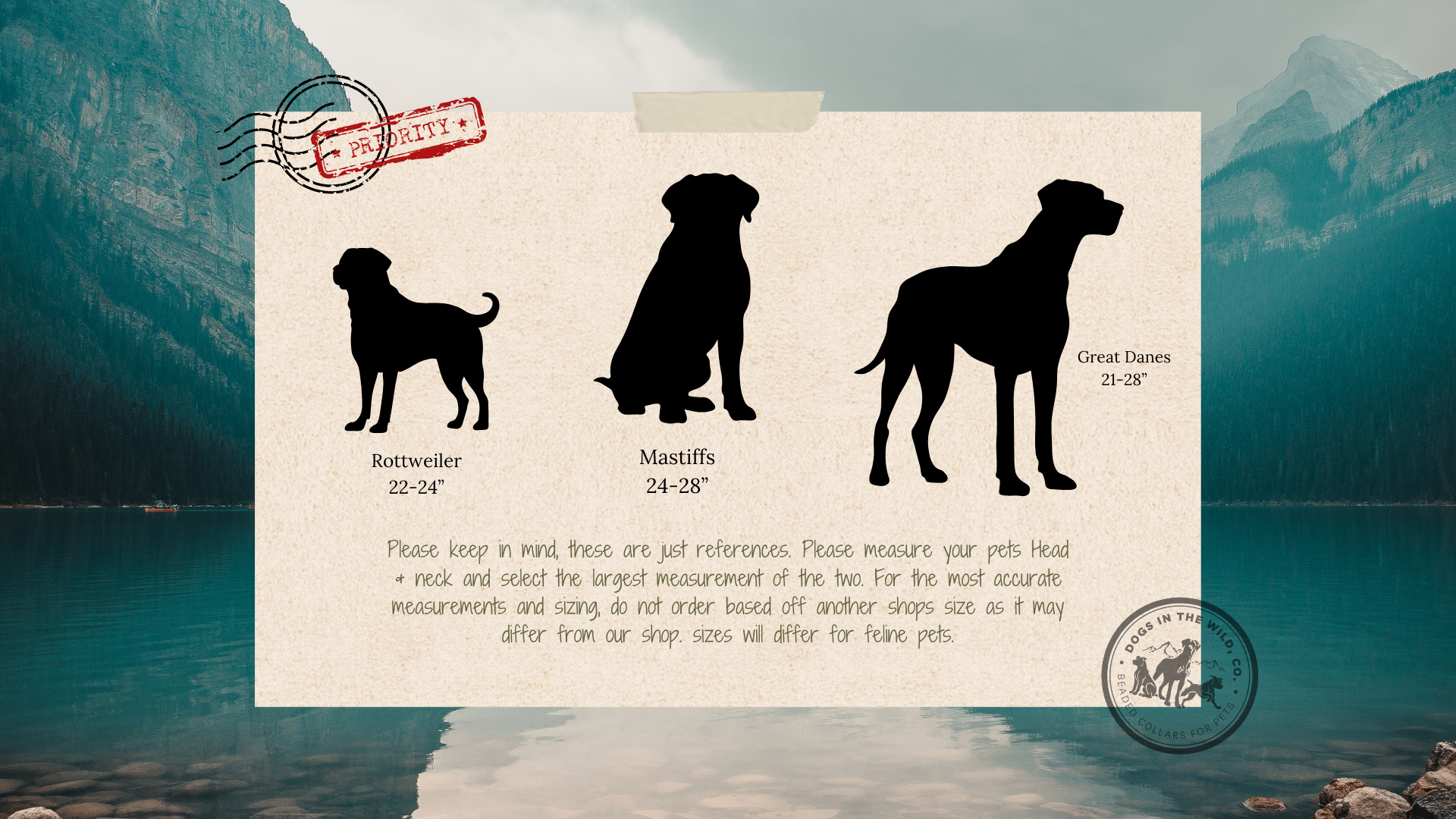 Welcome to our Size Guide page! We created this page to help you select the best collar size for your pet. All of our collars are made-to-order, therefore, all sales are considered final. Please do not "guestimate" your pets head/neck size!