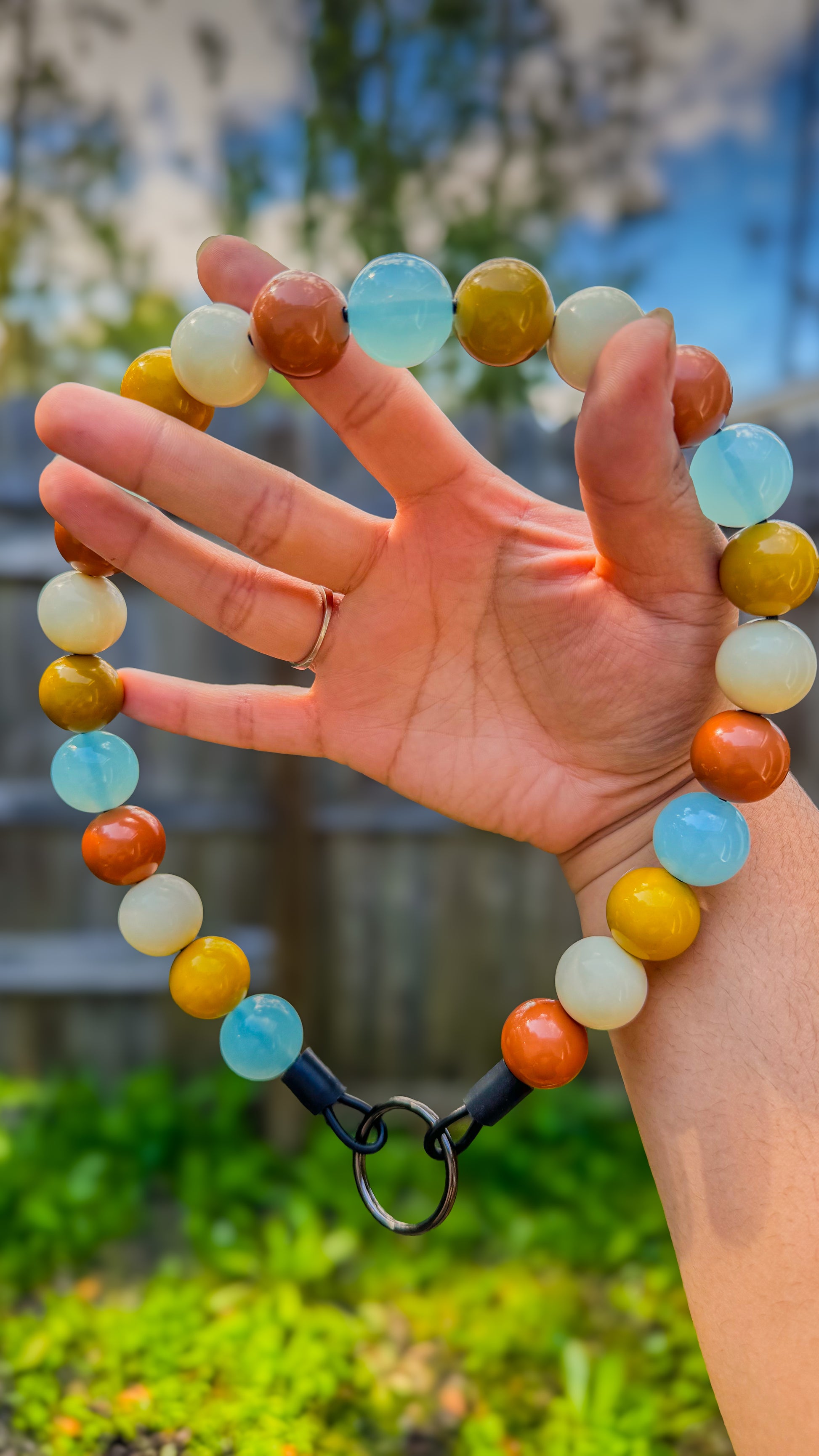 This custom, handmade Canyon Beaded Collar captures the colors of America’s great canyons with vibrant 20mm beads in clear blue resin and earthy browns, tans, and whites. Designed for adventurous pets, it’s strong and durable enough to keep up with every outdoor escapade. Add a splash of nature’s beauty to your furry friend’s style with this playful and rugged collar made just for explorers!