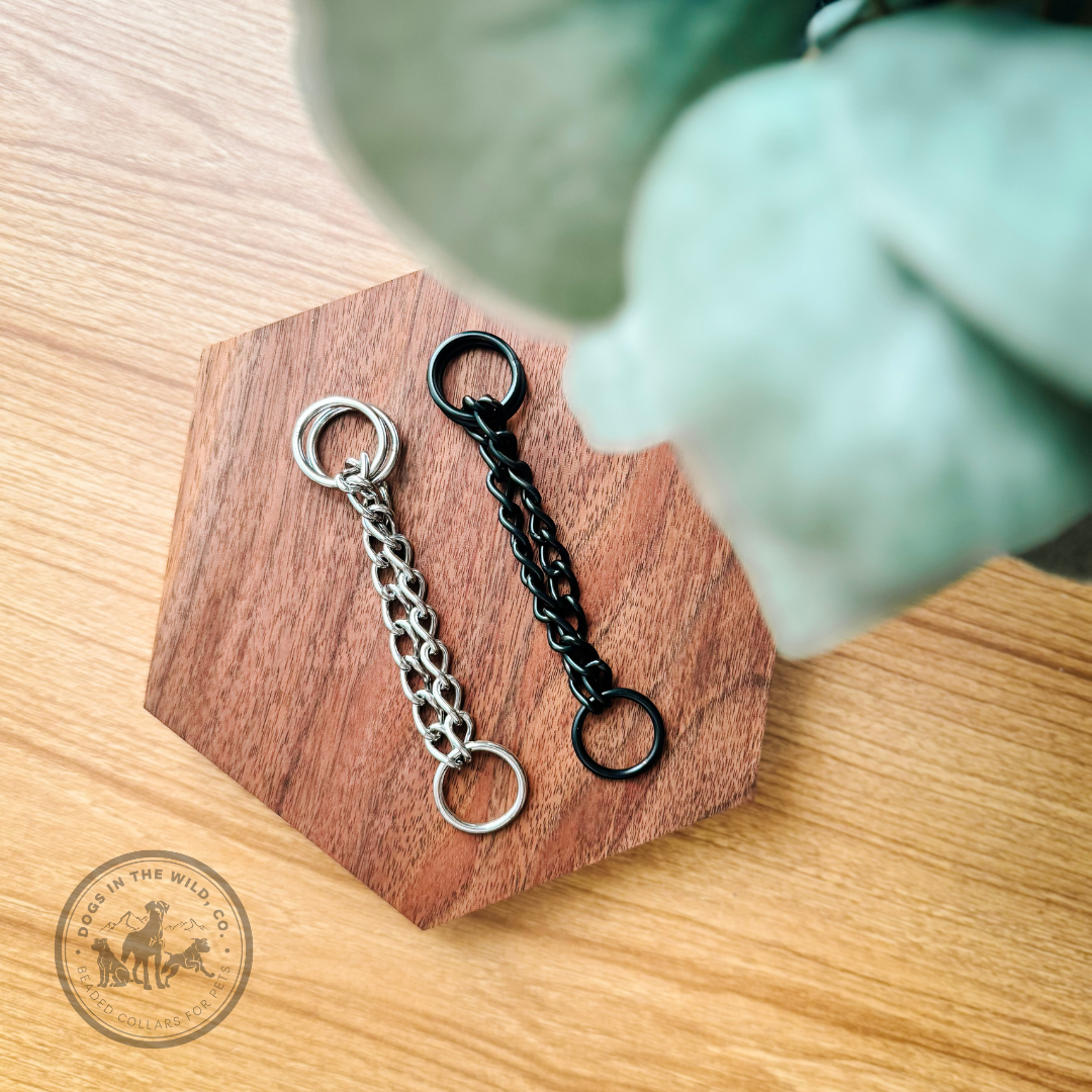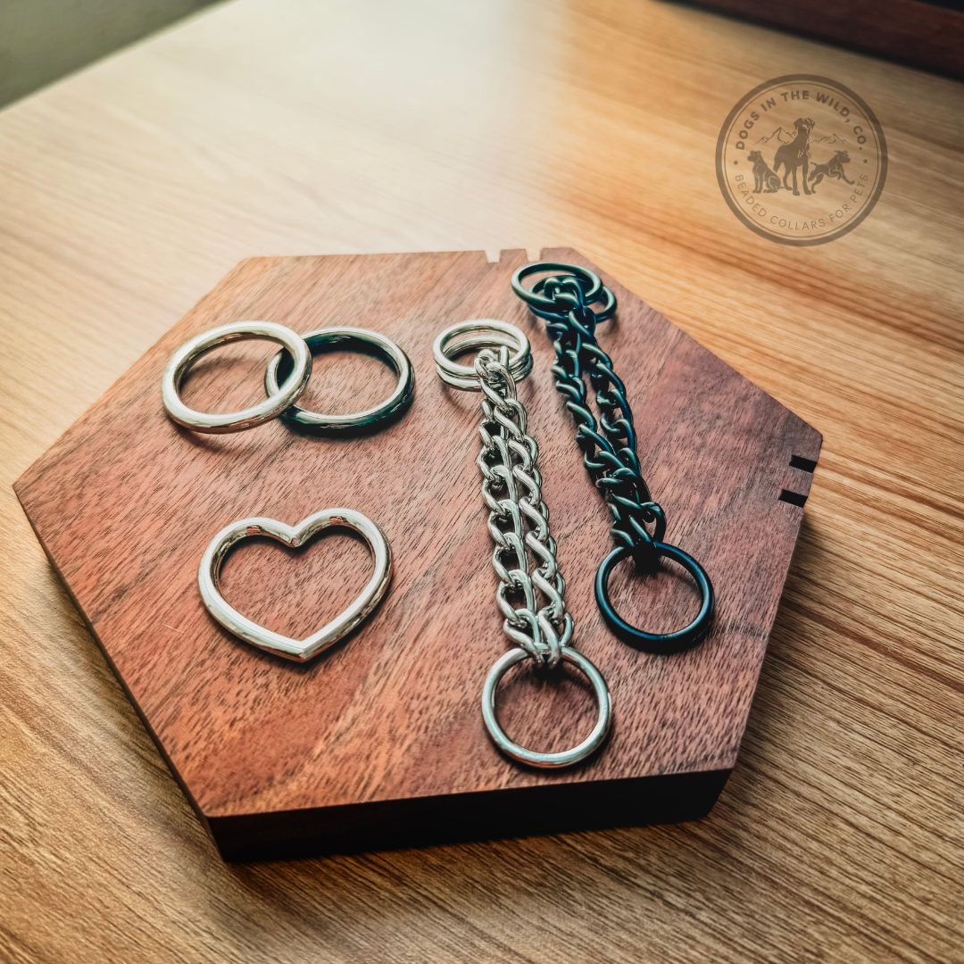 Each collar is custom and handmade! All of our collars consist of a series of high-quality acrylic, resin and mixed beads strung onto a high-grade stainless-steel vinyl coated wire, with a break strength over 400 lbs, crimped at both ends to ensure maximum comfortability and durability and connected by one of our closure styles (O-ring, Martingale and Heart-shaped rings available)
